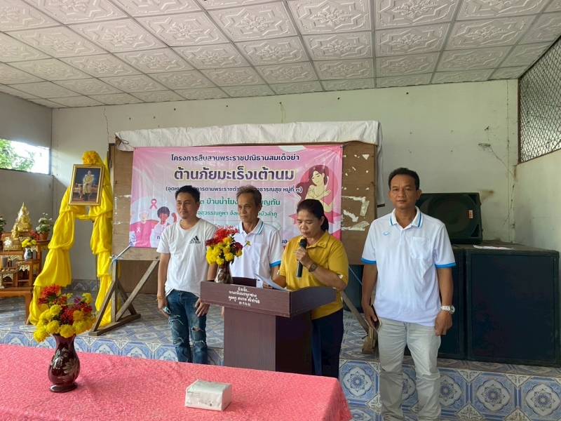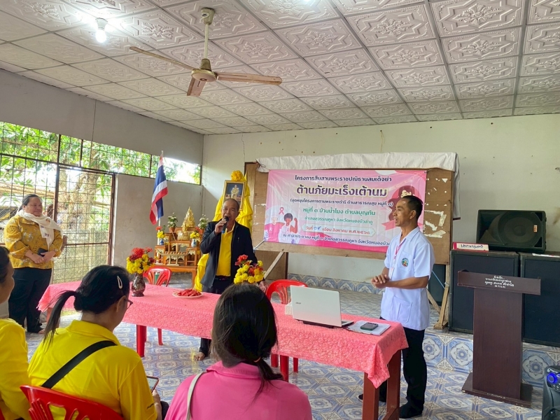 วันที่ 29 กันยายน 2568 นางสดศรี เฉยบุญเรือง นายกเทศมนตรีตำบลบุญทัน มอบหมายให้ นางวงค์เดือน เถาถาวงศ์ เลขานุการนายกเทศมนตรีตำบลบุญทัน เป็นประธานในพิธีเปิดโครงการสืบสานพระราชปณิธานสมเด็จย่า ต้านภัยมะเร็งเต้านม (อุดหนุนโครงการตามพระราชดำริ ด้านสาธารณสุข หมู่ที่ 3) เพื่อสืบสานเจตนารมฯของสมเด็จย่า โดยมีวัตถุประสงค์หลักในการให้ความรู้เกี่ยวกับมะเร็งเต้านม การสอนและกระตุ้นให้สตรีไทยเข้าตรวจเต้านมด้วยตนเองอย่างสม่ำเสมอ เฝ้าระวังและค้นพบมะเร็งเต้านมในระยะเริ่มต้น โดยมี คณะผู้บริหาร สมาชิกสภา ผู้นำชุมชนและประชาชนเข้าร่วมโครงการดังกล่าว ณ ศาลาประชาคม หมู่ที่ 3 ตำบลบุญทัน อำเภอสุวรรณคูหา จังหวัดหนองบัวลำภู