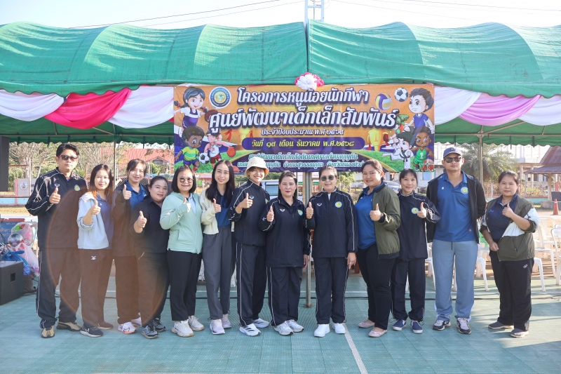 วันที่ 19 ธันวาคม 2568 นางสดศรี เฉยบุญเรือง นายกเทศมนตรีตำบลบุญทัน ร่วมเป็นประธานในพิธีโครงการหนูน้อยนักกีฬาศูนย์พัฒนาเด็กสัมพันธ์ ประจำปีงบประมาณ พ.ศ.2569 พร้อมคณะผู้บริหาร ข้าราชการ พนักงาน ผู้นำชุมชน เพื่อเป็นการส่งเสริมและพัฒนาเด็กนักเรียน ในการรักการออกกำลังกายเพื่อสุขภาพ ณ สนามฟุตซอลเทศบาลตำบลบุญทัน อำเภอสุวณคูหา จังหวัดหนองบัวลำภู
