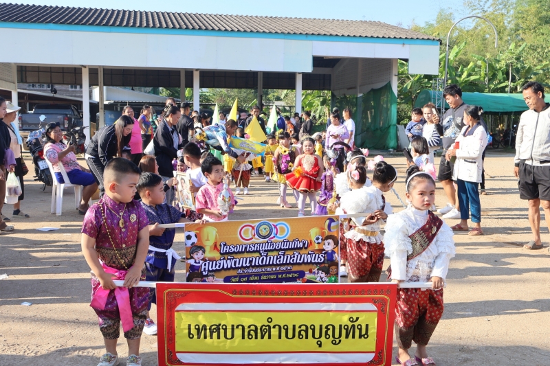 วันที่ 19 ธันวาคม 2568 นางสดศรี เฉยบุญเรือง นายกเทศมนตรีตำบลบุญทัน ร่วมเป็นประธานในพิธีโครงการหนูน้อยนักกีฬาศูนย์พัฒนาเด็กสัมพันธ์ ประจำปีงบประมาณ พ.ศ.2569 พร้อมคณะผู้บริหาร ข้าราชการ พนักงาน ผู้นำชุมชน เพื่อเป็นการส่งเสริมและพัฒนาเด็กนักเรียน ในการรักการออกกำลังกายเพื่อสุขภาพ ณ สนามฟุตซอลเทศบาลตำบลบุญทัน อำเภอสุวณคูหา จังหวัดหนองบัวลำภู